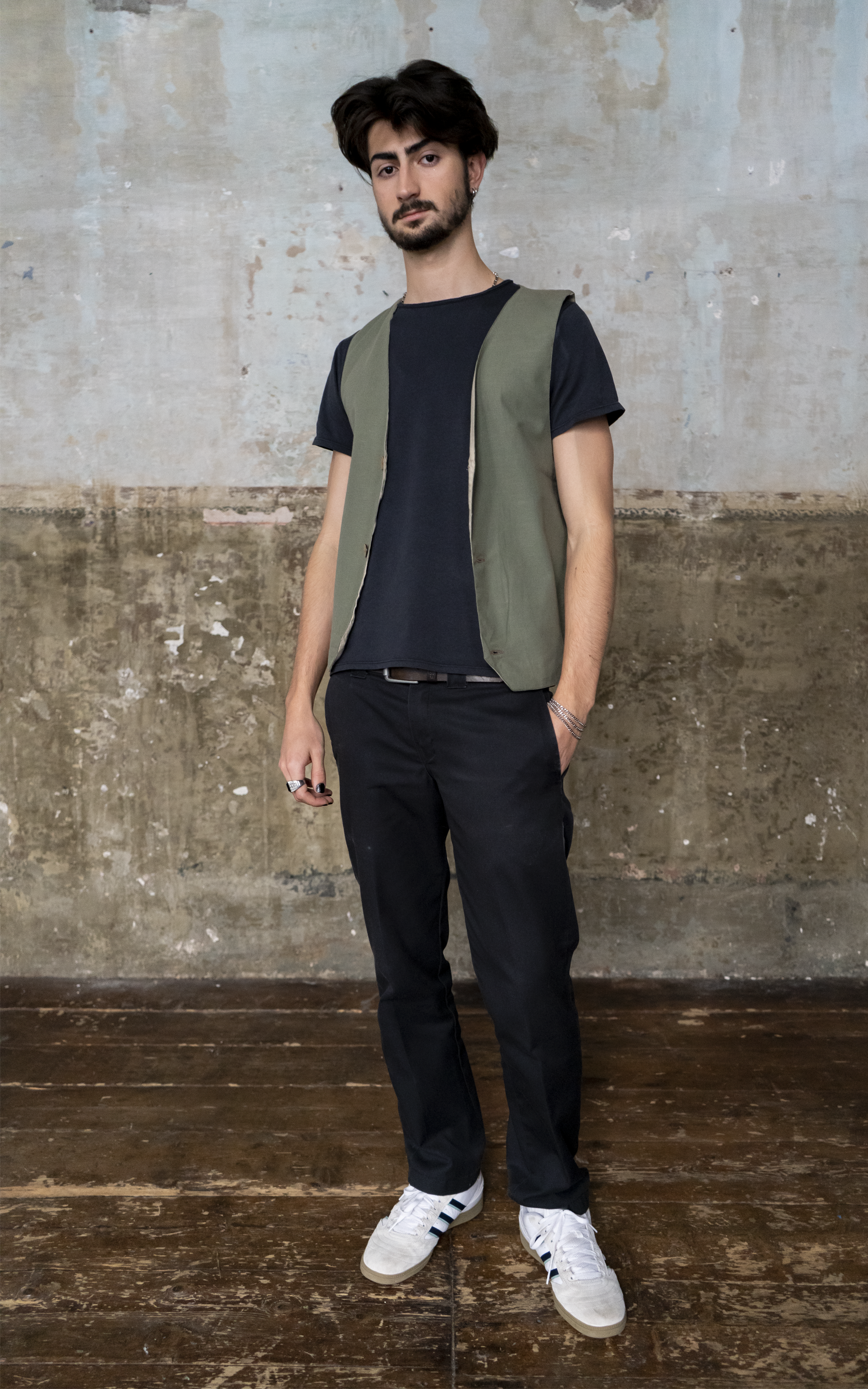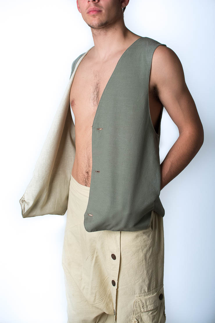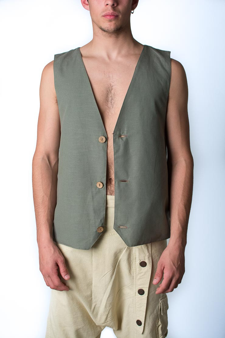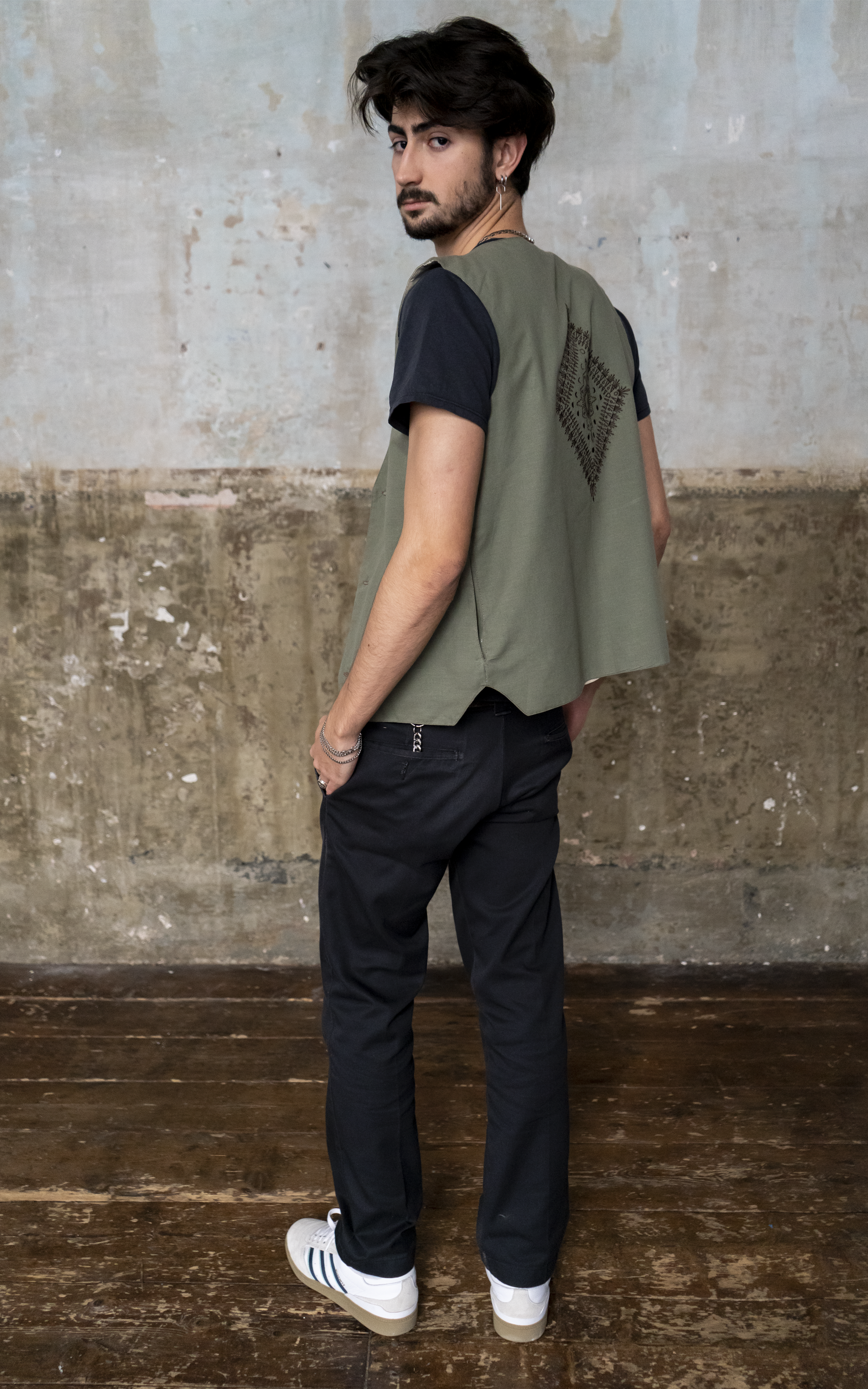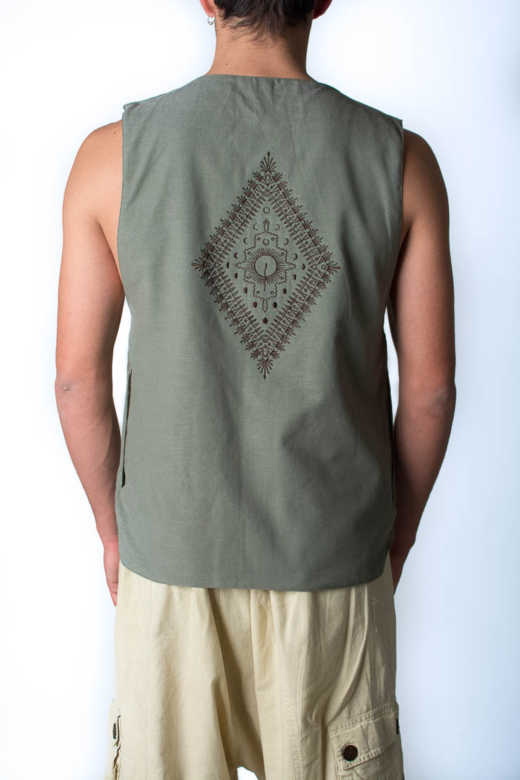 Chaleco de algodón y lino con bordado diseñado del artista Metoikos Craft