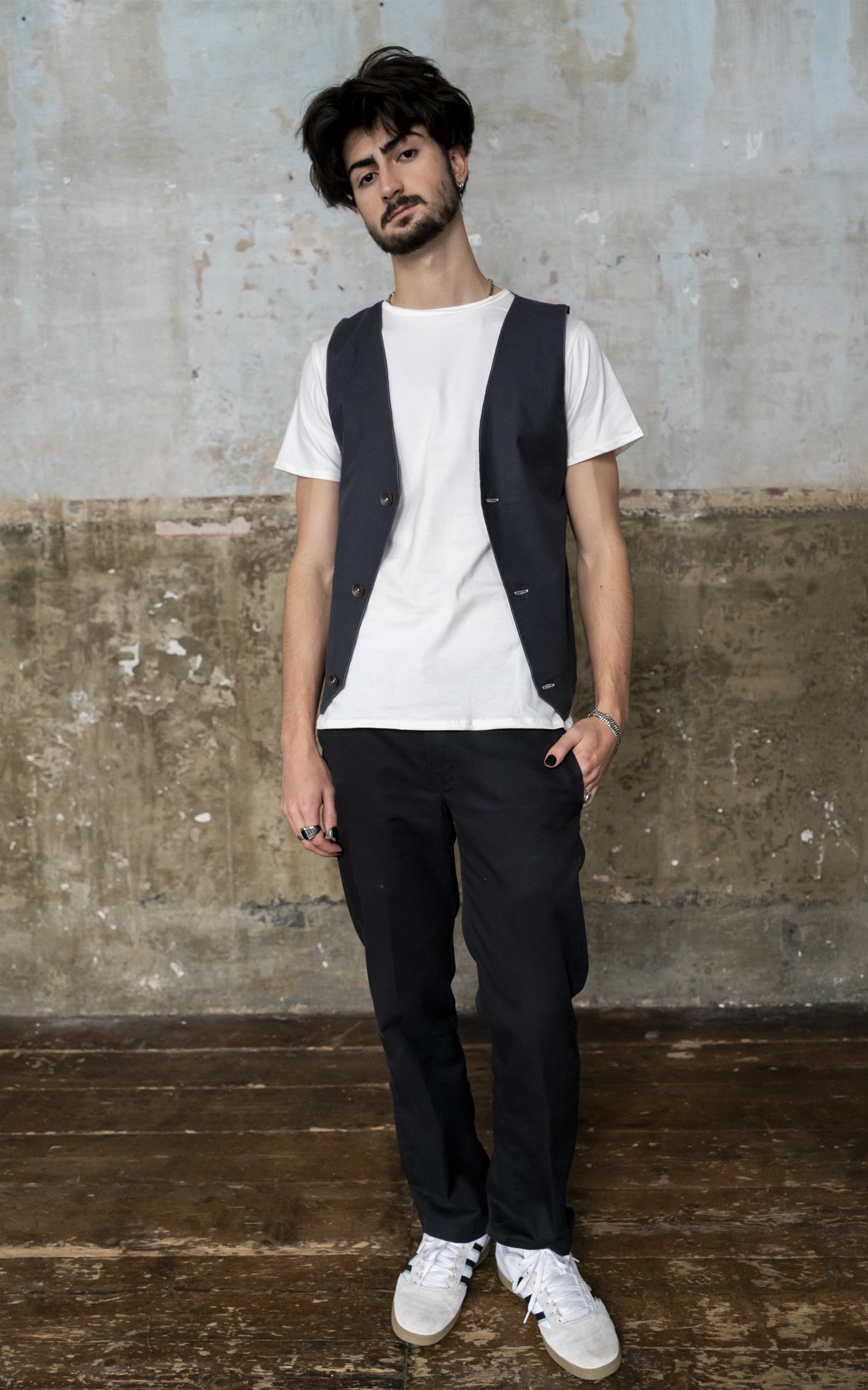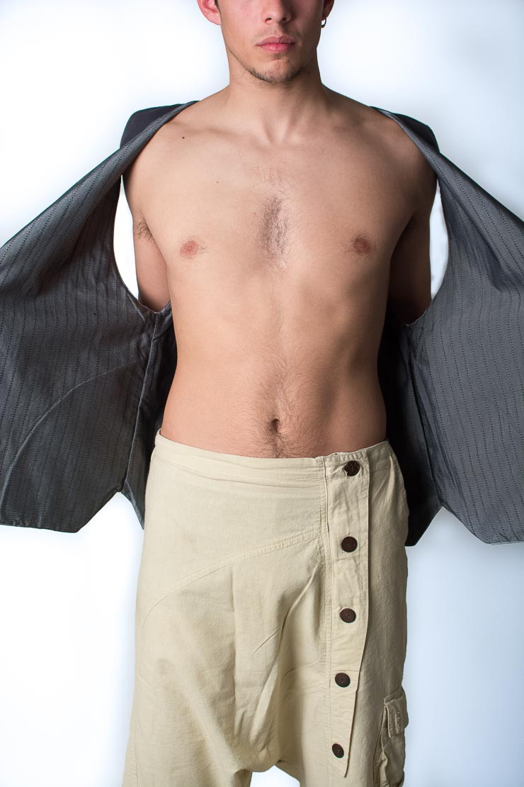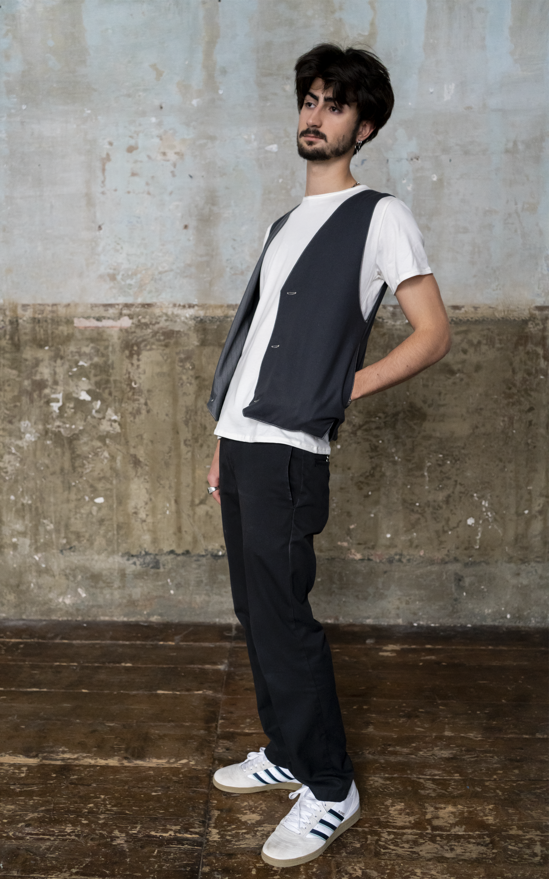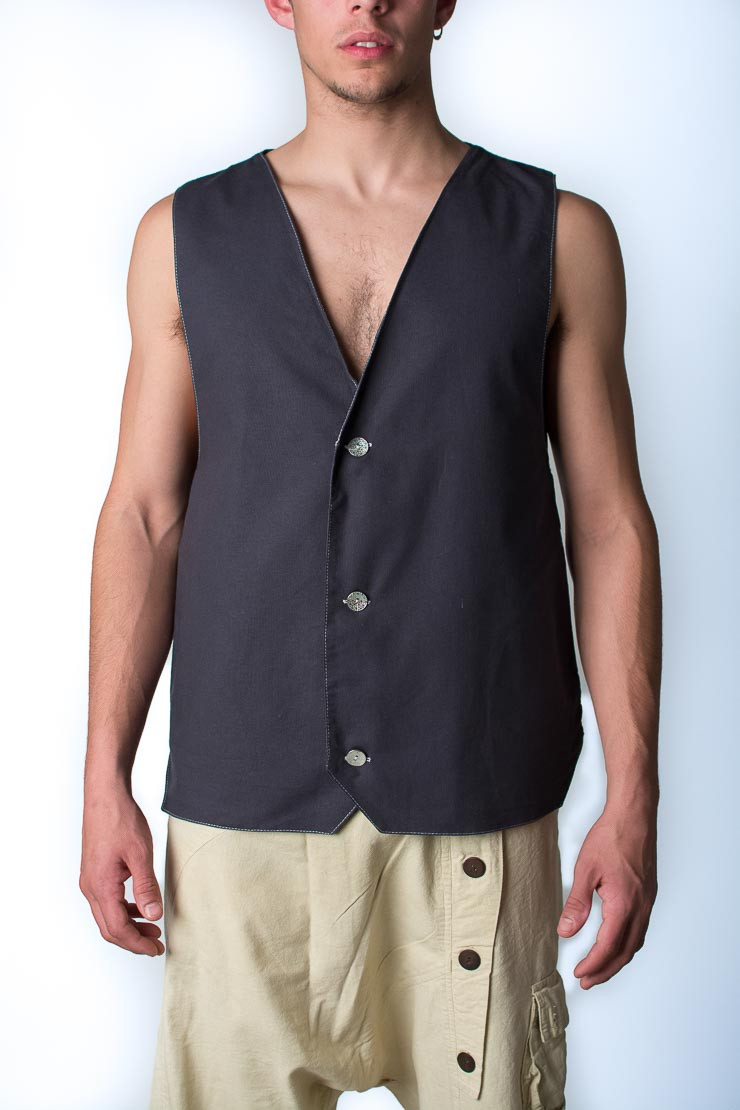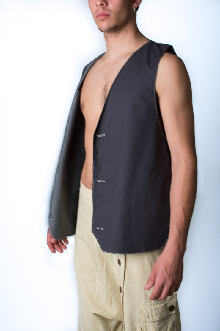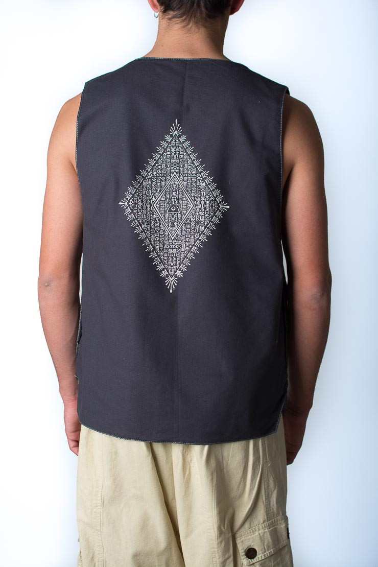Chaleco de algodón con forro estampado de tela de seda y lino, con serigrafía del artista Metoikos Craft