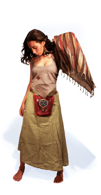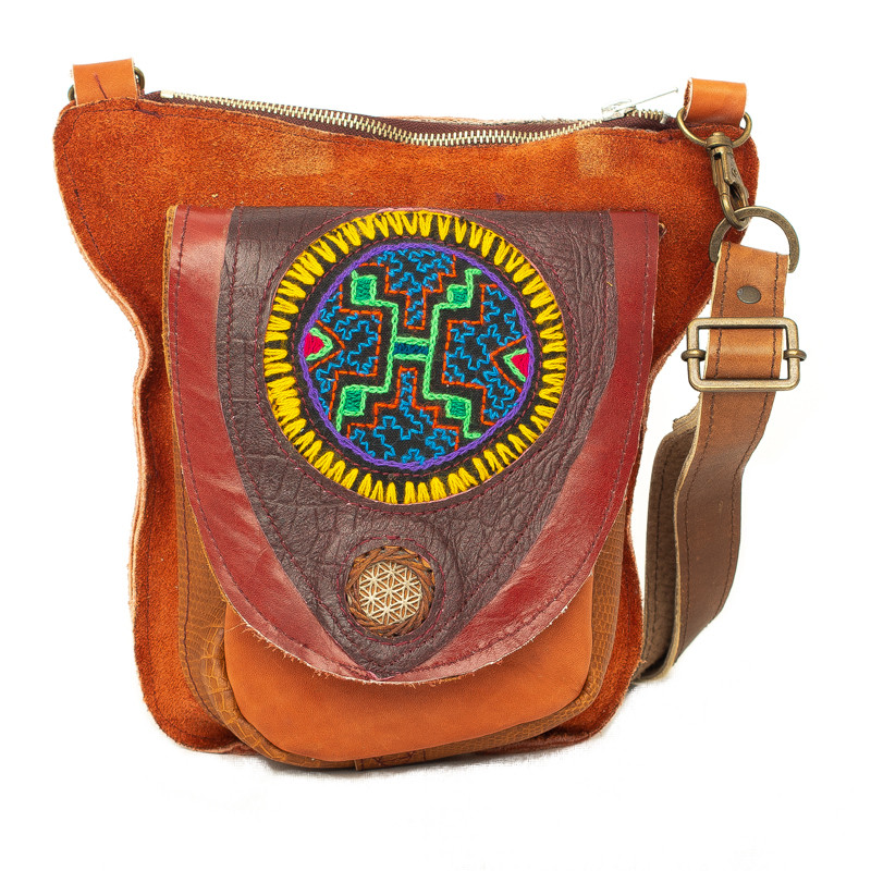 Bolso-Riñonera con parche bordado Shipibo y geometría sagrada
