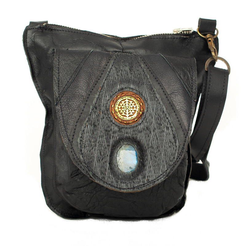 Bolso/Riñonera de cuero con piedra Labradorita.