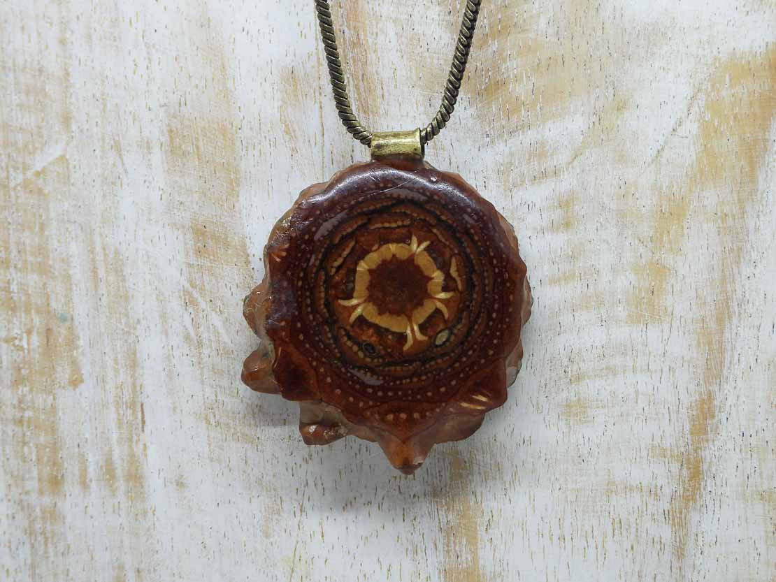 Estas piñas han sido recolectadas y seccionadas en vivo, pulidas a mano y trabajadas conscientemente para crear de cada una de ellas un objeto de poder o talisaman para finalmente con una capa de resina protegerlas y dejarlas congeladas en esa forma.
