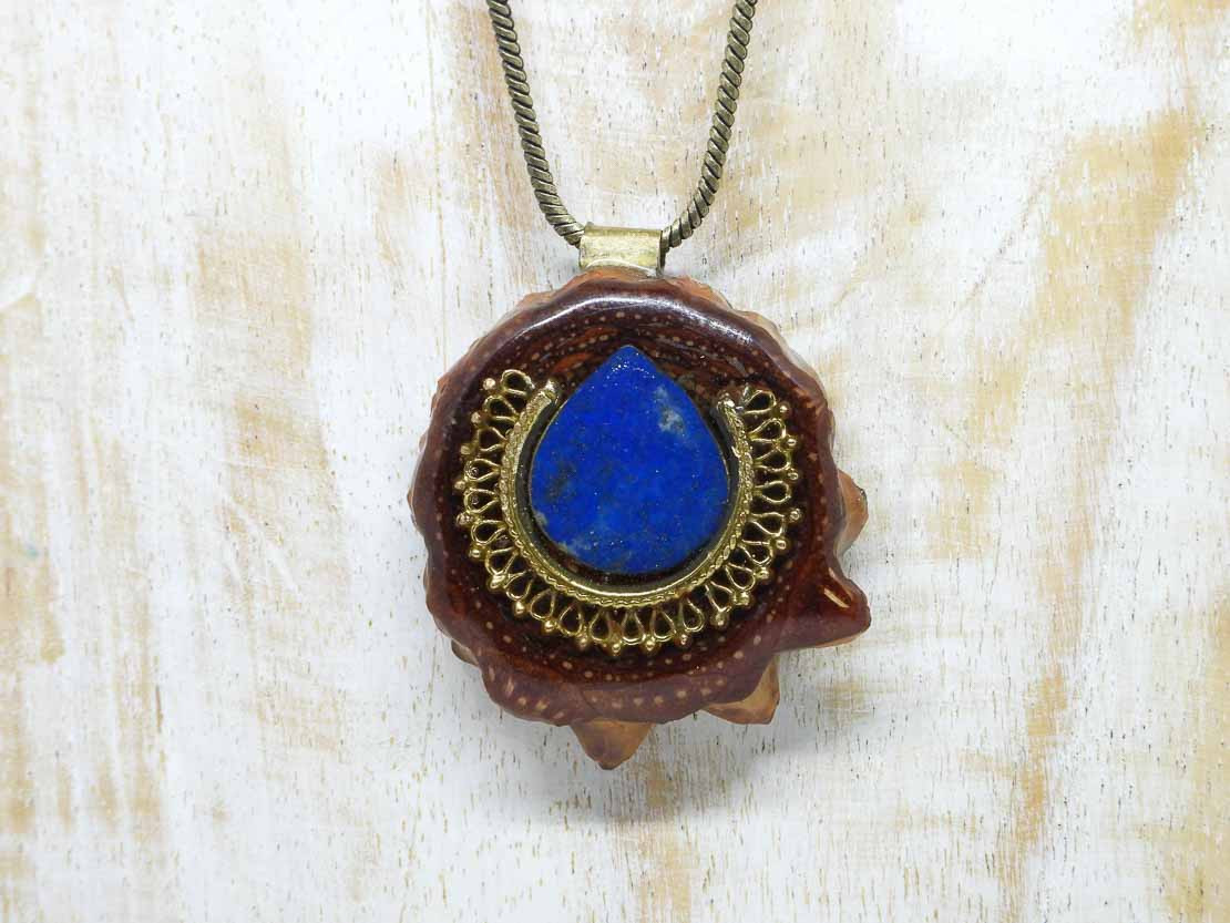 Fragmento de piña con combinación de joyería del Rajhastán con lagrima de Lapizlázuli.